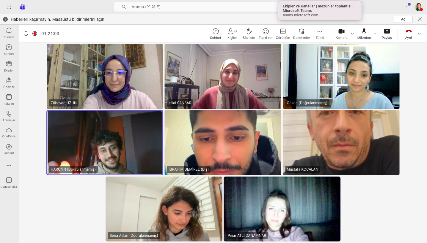 The Graphic Design Department of the Fethi Toker Faculty of Fine Arts and Design in Safranbolu held its alumni meeting online on November 6, 2025. During the meeting, alumni exchanged views on their employment situations, postgraduate education processes, and the adequacy of the education provided in the department. Participants contributed to the development of the department by sharing their satisfaction and experiences.