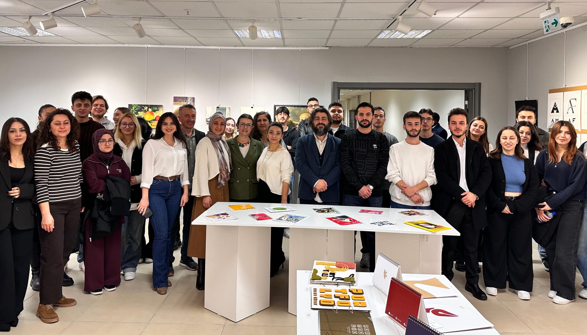 The exhibition, prepared by the Graphic Design Department of Karabük University and featuring selected student works produced in studio courses throughout the 2024-2025 academic year, opened to the public on Tuesday, November 25, 2025. The opening ceremony was attended by Vice Rectors Prof. Dr. İsmail Rakıp KARAŞ and Prof. Dr. Elif ÇEPNİ, and the Acting Dean of the Faculty of Fine Arts and Design, Prof. Dr. Suat ALTUN.