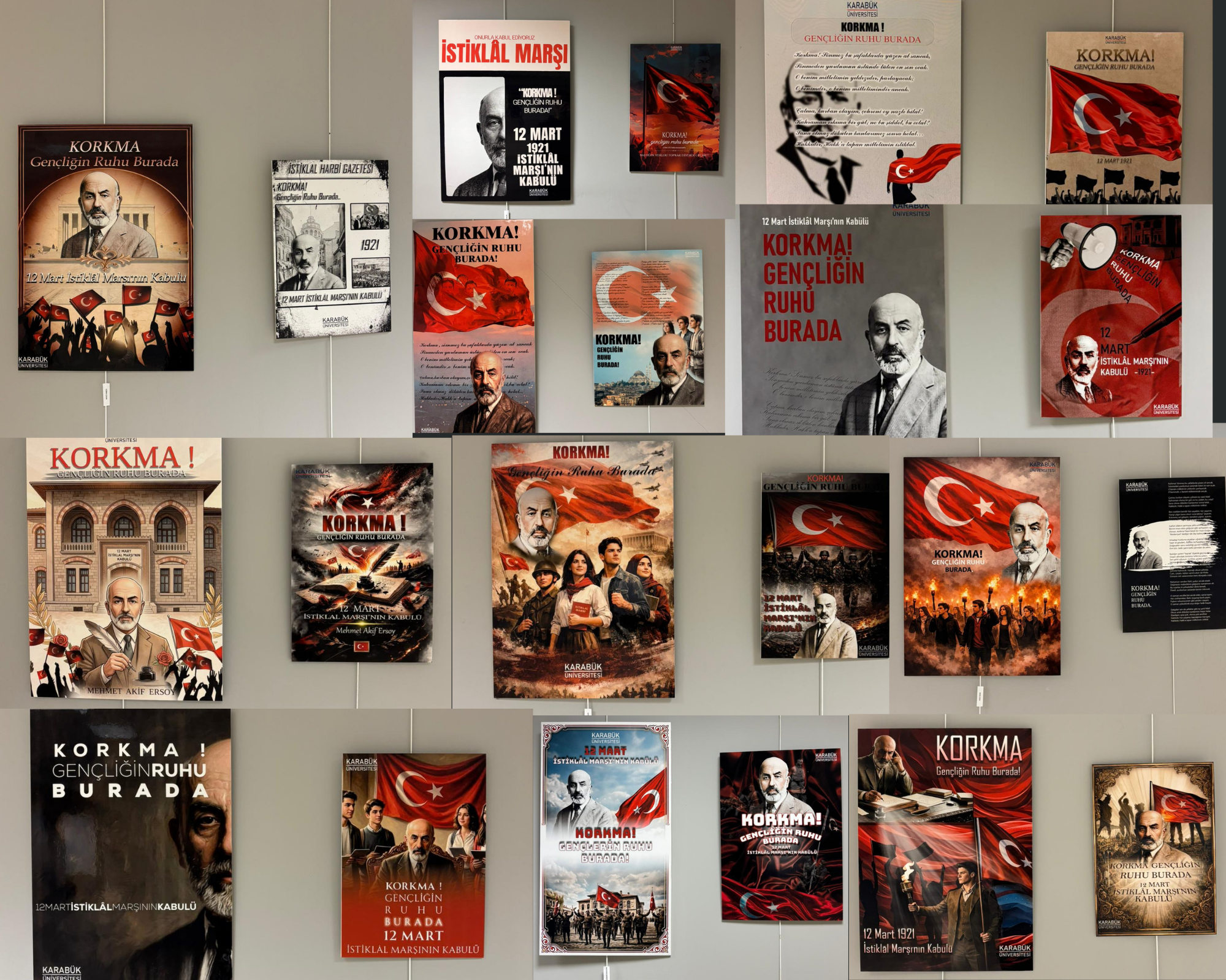 Karabük Üniversitesi Safranbolu Fethi Toker Güzel Sanatlar ve Tasarım Fakültesi Resim Bölümü tarafından, İstiklal Marşı’nın kabulünün yıl dönümü kapsamında “Korkma Gençliğin Ruhu Burada” başlıklı poster sergisi açıldı.