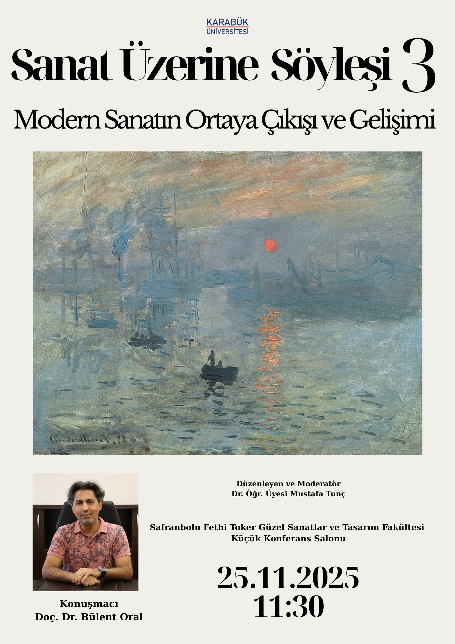 Dr. Öğretim Üyesi Mustafa TUNÇ düzenlemesinde ve moderatörlüğünde Sanat Üzerine Söyleşinin 3. programında Doç. Dr. Bülent Oral'ın konuşmacı olarak konuk oldu.